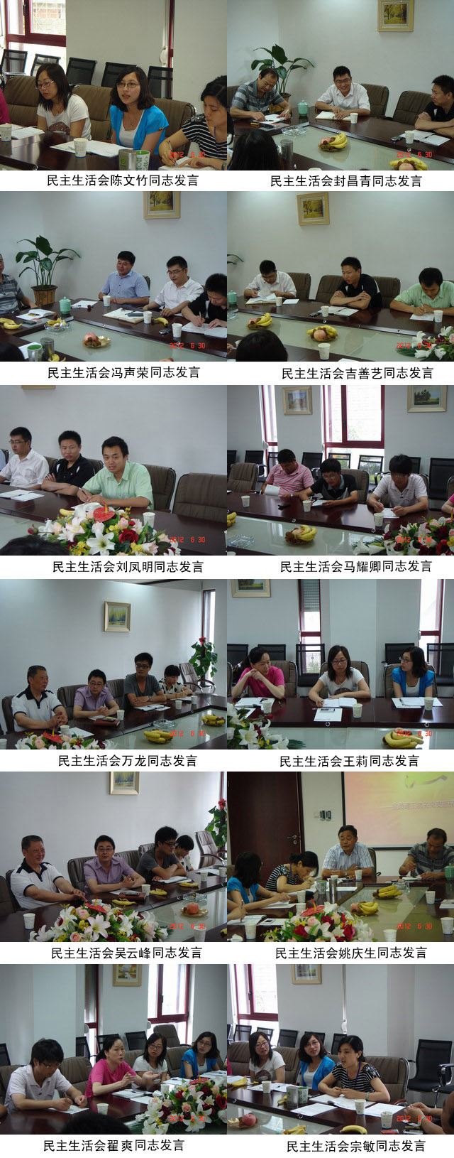 • 2012年6月30日,集團(tuán)公司機(jī)關(guān)黨支部為紀(jì)念中國共產(chǎn)黨成立91周年,在總部視頻會(huì)議室舉辦了慶祝系列活動(dòng)。 一、民主生活會(huì):當(dāng)日上午8時(shí)30分,集團(tuán)公司機(jī)關(guān)黨支部黨員聚集在集團(tuán)公司視頻會(huì)議室,開展了2012年上半年民主生活會(huì)。會(huì)議由張書記主持,廣大黨員分別進(jìn)行了發(fā)言,以工作、生活和思想意識(shí)中存在的問題開展了批評(píng)與自我批評(píng),并提出了自己的合理化建議。會(huì)議內(nèi)容豐富、每個(gè)黨員積極活躍發(fā)言總結(jié)不足之處。通過民主生活使黨員之間增進(jìn)了解,相互做出了客觀評(píng)價(jià),加強(qiáng)了黨員之間的友誼和團(tuán)結(jié),提升了團(tuán)隊(duì)凝聚力。 二、黨內(nèi)群眾座談會(huì):當(dāng)日上午10點(diǎn)整,集團(tuán)公司機(jī)關(guān)黨支部召開4位預(yù)備黨員(陳文竹同志、劉國順同志、趙俊青同志、孫明春同志)的轉(zhuǎn)正座談會(huì)。會(huì)議由張書記主持,介紹人分別介紹了各預(yù)備黨員的表現(xiàn)情況,每位黨員對(duì)四位預(yù)備黨員按時(shí)轉(zhuǎn)正進(jìn)行了評(píng)議和表決,最終全體黨員一致同意四位同志按期轉(zhuǎn)正。 三、烈士陵園瞻仰活動(dòng):中午,大家一同前往雨花臺(tái)烈士陵園瞻仰革命烈士,惲代英、鄧中夏等革命烈士的英勇事跡深深感動(dòng)了大家,那一首“浪跡江湖憶舊游,故人生死各千秋。已擯憂患尋常事,留得豪情作楚囚”讓大家久久不愿離去。