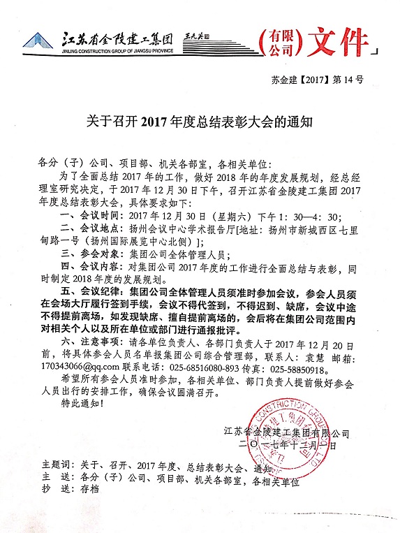 關(guān)于召開(kāi)2017年度總結(jié)表彰大會(huì)相關(guān)會(huì)議的通知