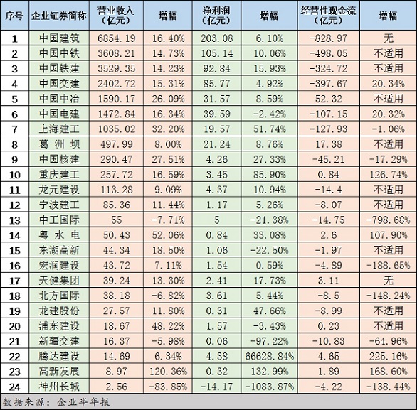 典型建筑業(yè)上市企業(yè)半年報(bào)透視:營(yíng)收、凈利潤(rùn)總體保持雙增長(zhǎng),“強(qiáng)者恒強(qiáng)”趨勢(shì)凸顯