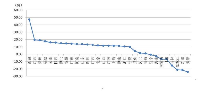 從各地區(qū)建筑業(yè)總產(chǎn)值增長情況看,有23個地區(qū)的建筑業(yè)總產(chǎn)值較上年同期有不同幅度的增長。其中,西藏、江西、貴州、福建、云南、陜西的增幅均超過15%。有8個地區(qū)出現(xiàn)負(fù)增長,其中,天津、新疆、黑龍江、吉林出現(xiàn)了15%以上的負(fù)增長。