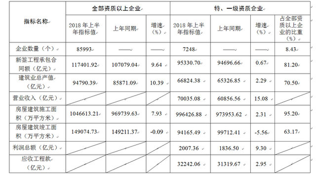 中國建筑業(yè)協(xié)會于9月14日發(fā)布《2018年上半年建筑業(yè)發(fā)展統(tǒng)計分析》。