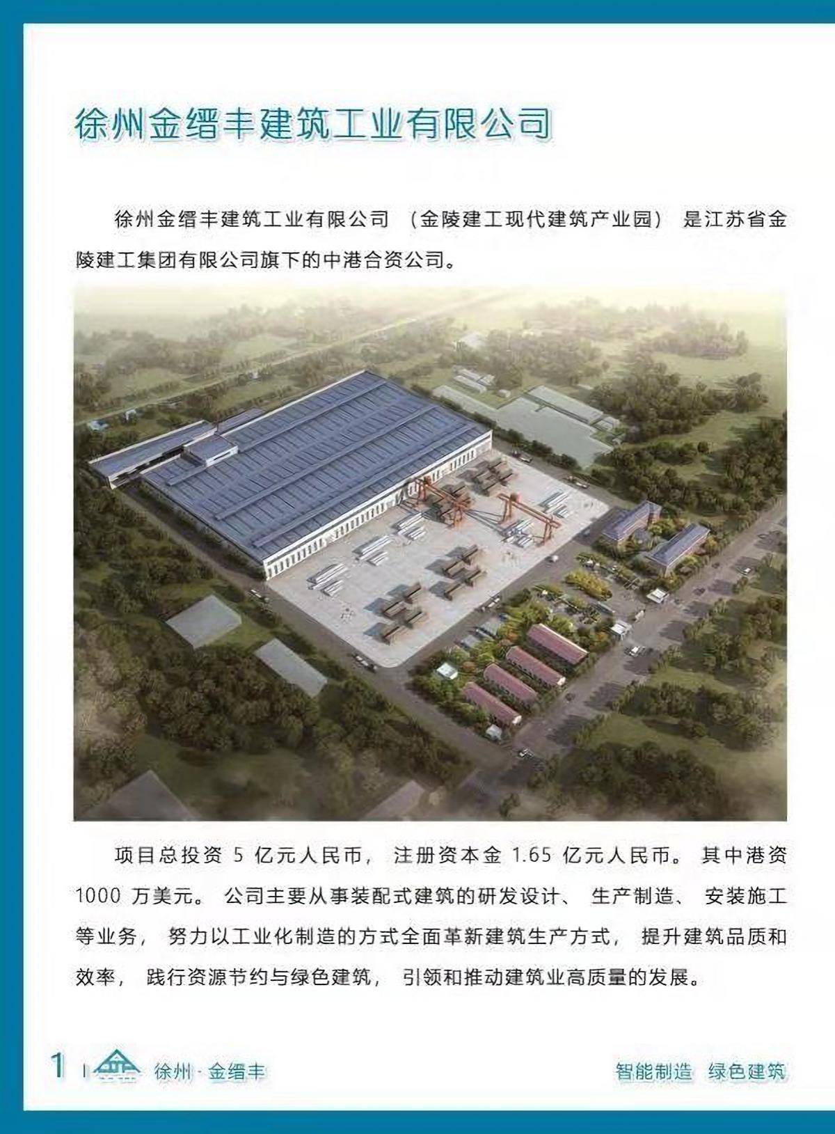 徐州金縉豐建筑工業(yè)有限公司(金陵建工現(xiàn)代建筑產(chǎn)業(yè)園)是江蘇省金陵建工集團(tuán)有限公司旗下的中港合資公司。公司注冊資金1.65億元人民幣。其中外資1000萬美元。公司將充分發(fā)揮金陵建工集團(tuán)研發(fā)、設(shè)計、生產(chǎn)、施工、投資一體化的優(yōu)勢,努力以工業(yè)化制造的方式全面革新建筑生產(chǎn)方式,提升建筑品質(zhì)和效率,踐行資源節(jié)約與綠色建筑,引領(lǐng)和推動建筑業(yè)高質(zhì)量的發(fā)展。